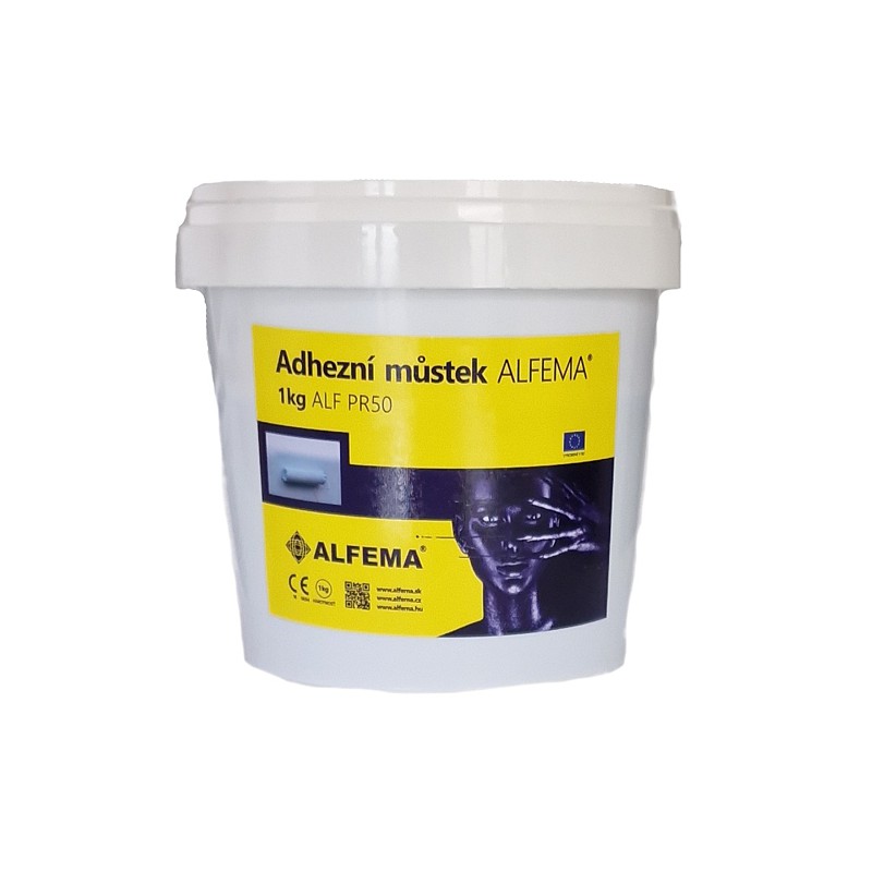 Speciální spojovací můstek na nenasákavé, nasákavé a nestabilní podklady vyvinutý pro zvýšenou přilnavost výrobků ALFEMA. ALF PR50 na bázi syntetické živice, ve vodní disperzi, s obsahem křemičitých plniv a s velmi nízkým obsahem prchavých, organických látek, připravený na přímé použití, zlepšující přídržnost, který je možné použít v interiéru i exteriéru. Vytváří oddělující vrstvu, drsný nelepivý podklad s vysokou přilnavostí. Výrazně zvýší drsnost podkladu a zaručí tak vyšší přídržnost výrobků ALFEMA.